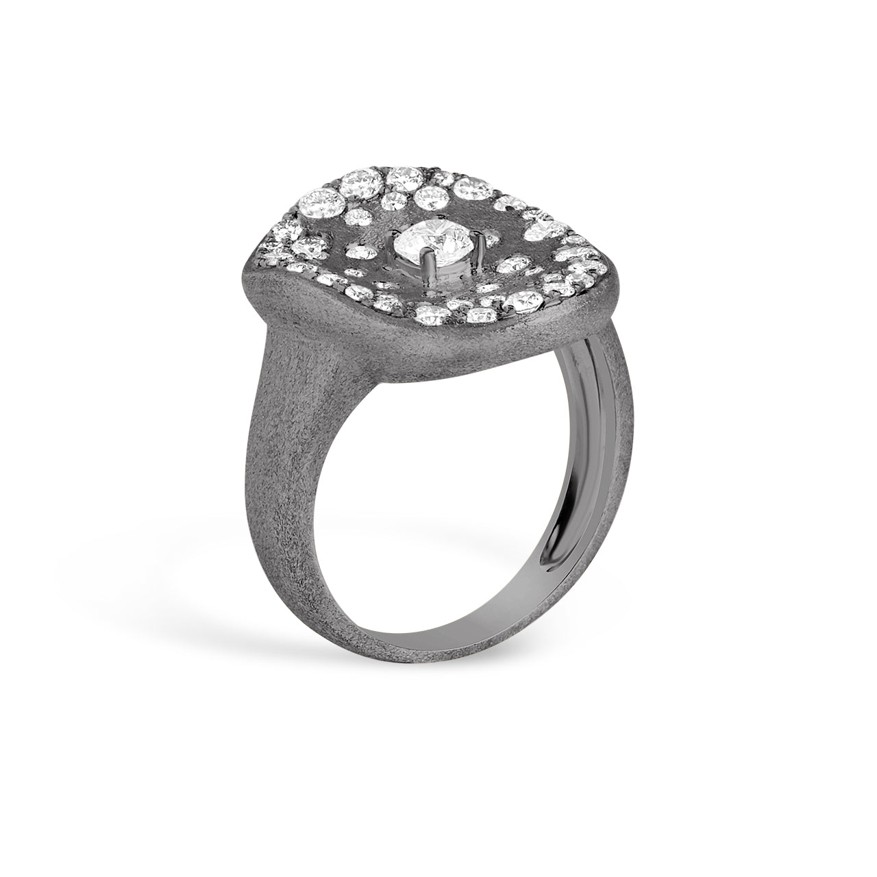 Elevate your style with the Diamond Confetti Artisan Cocktail Ring, featuring a diamond center embraced by a scattered diamond halo. Set in a unique freeform design with our signature satin finish, this ring combines artistry and elegance for a captivating statement piece that shines from every angle.