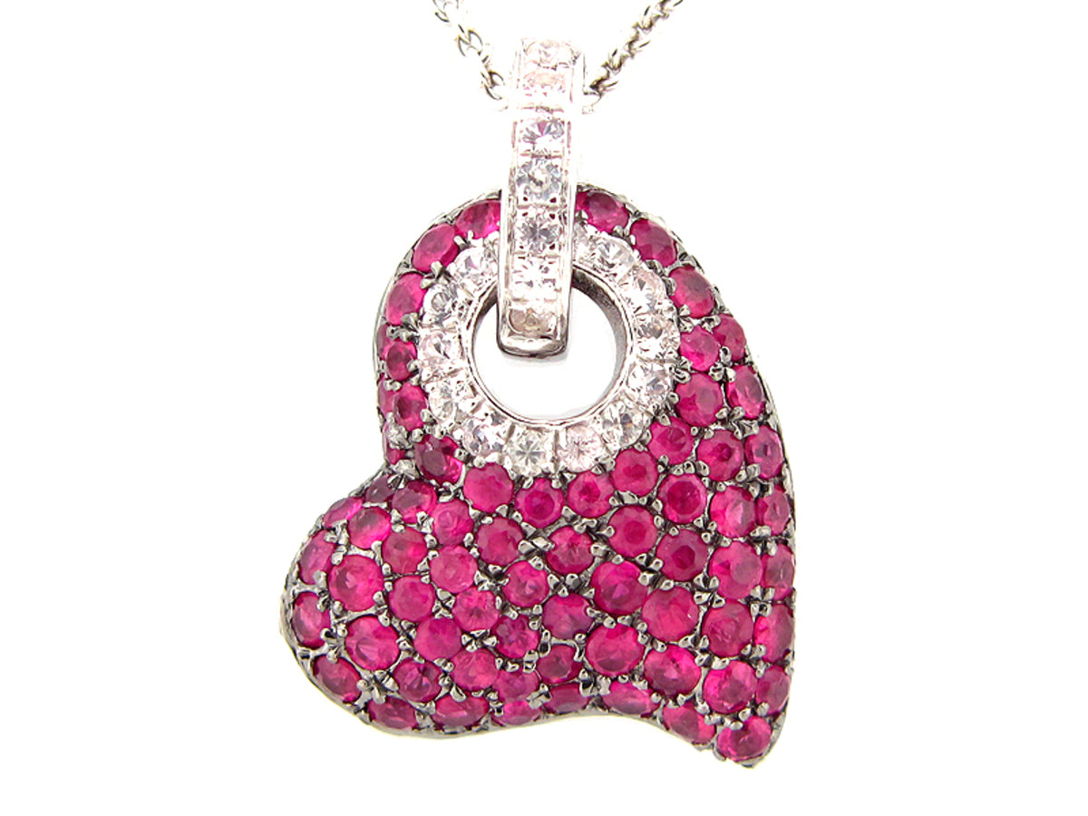 RUBY & WHITE SAPPHIRE PENDANT, SILVER (H)